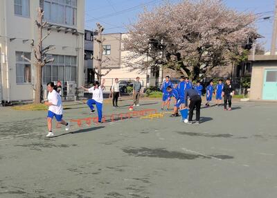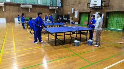 陸上部では、ミニハードルを使用した練習などを行いました。卓球部では、ラケットを使用し、ボールを打ち返す練習を行いました。すべてが初めてで難しいですが、楽しいです。