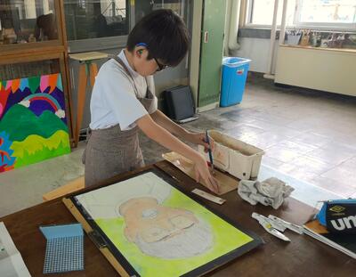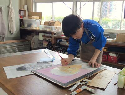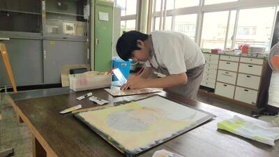 <中1,2,3>美術でうちわのデザインを考えて創作活動をしています。どんな作品に仕上がるのか楽しみです!