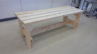スライド丸のこで木材を切断し、電動ドリルを使って組み立てました。