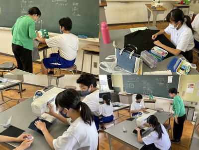 ロックミシンで縫い代の仕末をしたり、ポケットを縫ったりしました。真剣です!