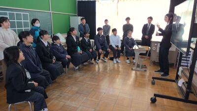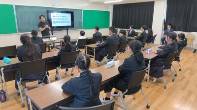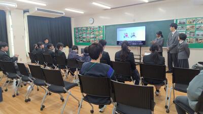 中学部では、高等部3年生の先輩方から自身の進路についてどのように決定したのか、また、どんな努力をしたのかについての話を聞きました。身近な先輩方の話を聞き、これからの自分の進路を考える機会となりました。