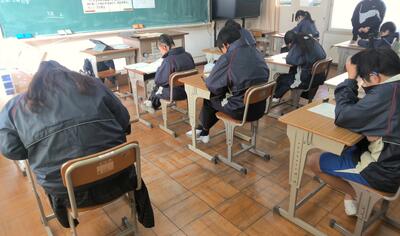 中学部の3学期の学級活動です。1,2年生は各学年で「卒業生を祝う会」の出し物について検討中です。3年生に喜んでもらえるには、何がよいのかみんなで相談しています。3年生は、入試・卒業に向けての準備です。それぞれ自分と向き合っています。3年生がんばれ!!