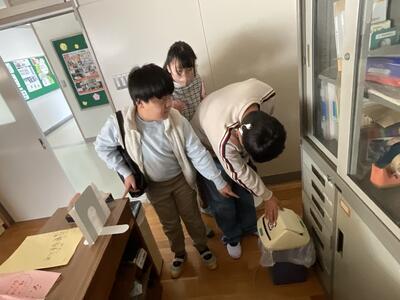 先日作成した、「プラマーク」と雑紙入れ封筒を図書室と高等部棟へ貼りに行きました。緊張の面持ちで高等部棟の階段を上がりましたが、笑顔で優しく対応してくれたお兄さんお姉さんのおかげで、ニコニコで配付を終えることができました。