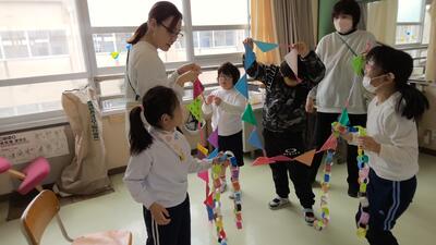 来年度、小学1年生になる幼稚部ぞう組さんときりん組さんを小学部に招いて、現1・2年生と一緒になかよし会を行いました。