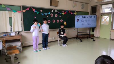 そして、次に最高学年となる5年生も卒業生のために、温かく楽しい送る会を企画、運営し、頼もしい姿を見せてくれました。1~4年生も卒業生や5年生を見て、一緒にお祝いの気持ちを表現できました。