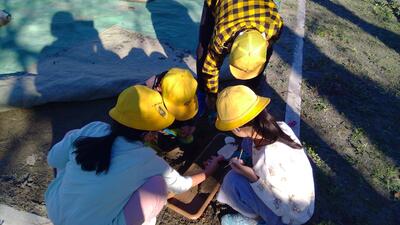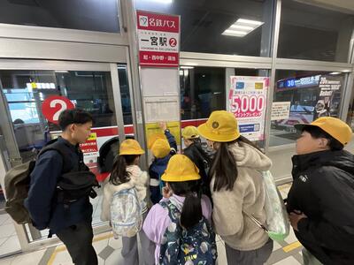 神社の木々もまだ紅葉とまではいっていませんでしたが、どんぐりや少し色づいた葉など、学習した秋をそれぞれで探すことができました。道中も、柿の木や干し柿など、秋を見つけられました。