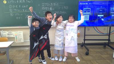 2学期の家庭科では、ミシンの使い方を学習して少しずつミシンに慣れ、10月からはエプロンづくりに取り組んできました。