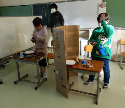 実験の前には、「家の近くの川はまっすぐだよ」という話から、実際の川は、まっすぐ?曲がっている?という議論もあり、友達と話し合いながら取り組めました。