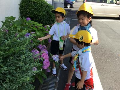 夏の植物や生き物を探しに、学校周辺へ出かけました。