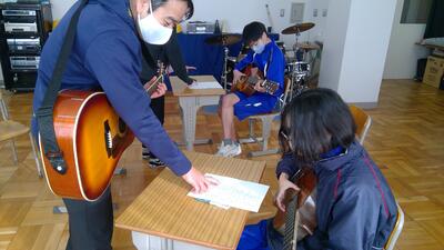 中学部3年生は、ギターに挑戦です。