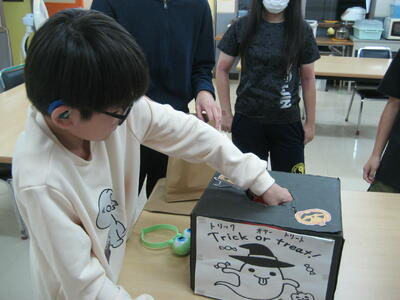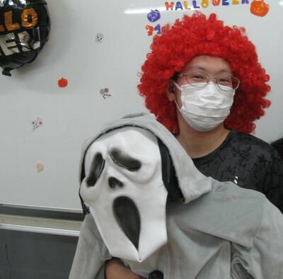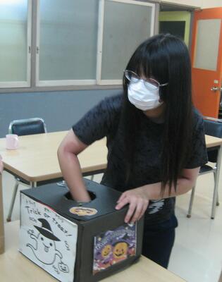 10月31日(木)ハロウィンの由来やクイズをして楽しみました。係の舎生が準備した「お菓子のつかみ取り」では、それぞれたくさんのお菓子を取ることができて嬉しそうでした。みんなで好きな仮装もして楽しく過ごしました。