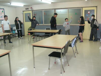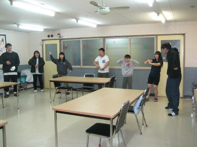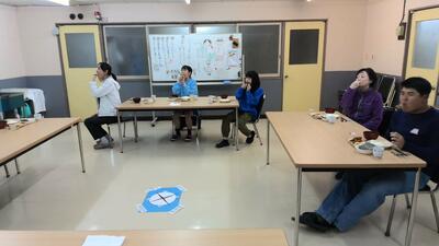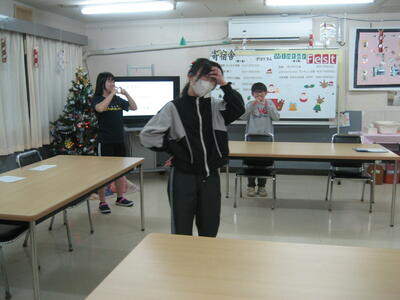 3月10日(月)に修了を祝う会を行いました。3名の在舎生から今年度の反省と新年度に向けての目標を語ってもらいました。会の最後には「私は誰でしょう?」と題したジェスチャーゲームを全員で行い、楽しく過ごしました。