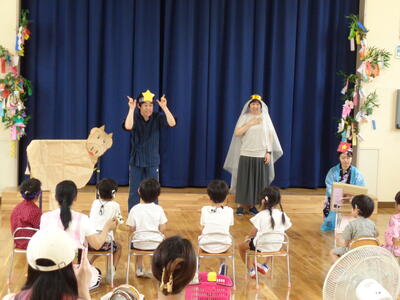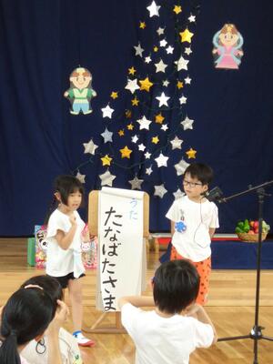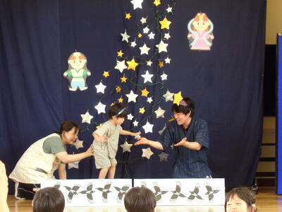 たなばたの げきを みたり、たなばたの うたを うたったり、「ほしぞらカーニバル」を おどったりしたよ。