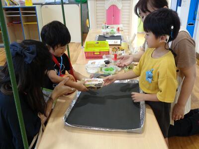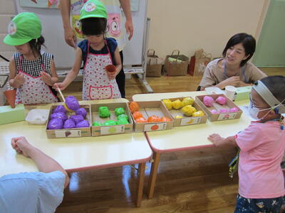 そして、みんなが たのしみに していた おみせやさんごっこの はじまりです。