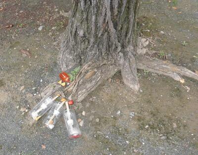 仕掛けを作って、アリを捕まえます。えさを4種類用意しました。