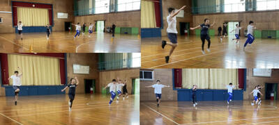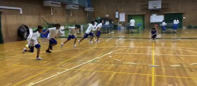 雨天のため、新年度の部活動説明会プレゼンテーション準備をした後、廊下と体育館でトレーニングをしました。ドリルやコーディネーショントレーニング、腰回りの筋力トレーニング、最後は線鬼をしました。線鬼では、2人の鬼に捕まらないように、逃げ道を考えながら猛ダッシュで逃げ、楽しみながらトレーニングできました。
