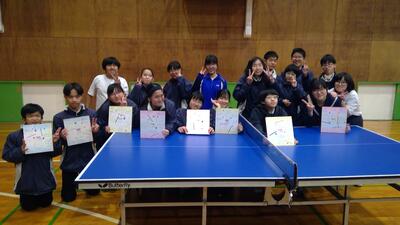 2月27日(水)、卓球部では、3年生を送る会が行われました。感謝の気持ちを込めた色紙をプレゼントした後、先輩方もまじえて最後のお別れ練習をしました。