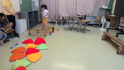 またいだり、くぐったり、バランスを取ったり・・・。しっかり体を動かせました!