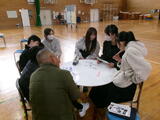 前回のTボールのように、ドッヂビーが落ちたところで得点が決まります。落ちる前に相手チームに取られてしまうと、得点が入りません。低く投げたり、相手がいないところをねらったり、工夫して取り組むことができました。