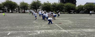 体育大会の競技・演技練習です。今年度の競技は「棒引き」です。棒引きが1対1だけではないため、作戦を立てて挑んでいます!