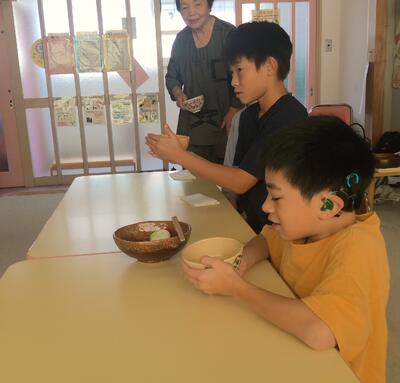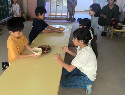 お茶の先生をお招きし、礼儀作法などを教えていただきながら、亭主と客人をそれぞれ交代して体験しました。