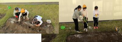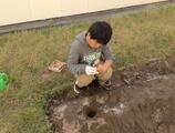球根3つ分の穴をほり、球根の向きに注意して植えました。