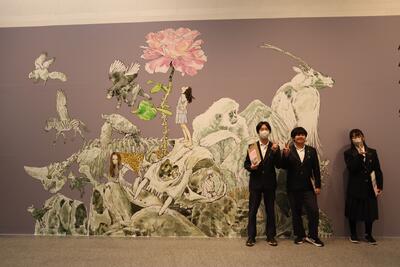 いつもと違う学校近くの神社で、開放された空間でひらめいた作品になりました。