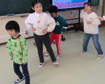 「しろくまのジェンカ」では、右、右、左、左、前、後ろ、前、前、前という動きを合わせて、