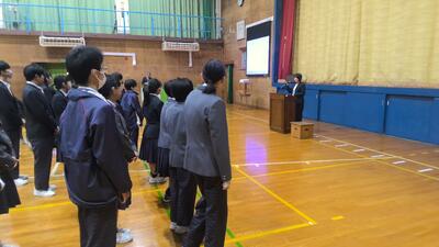 部主事の先生からは、冬休みクイズと家のお手伝いをしようというお話