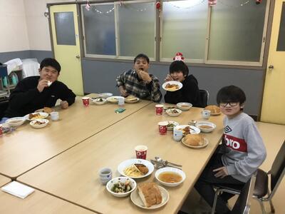 12月17日(水)「ウィンターディナー」で今年の締めくくりにみんなでおいしい夕食を囲みました。プレゼント交換もして楽しみました!