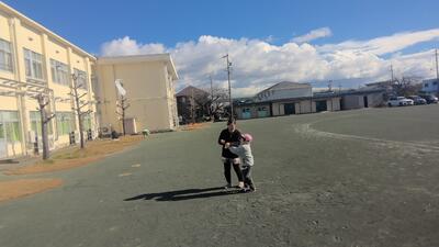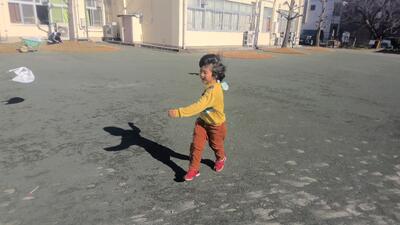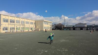 PTAからいただいた凧で遊びました。風が強かったため、よくあがりました。