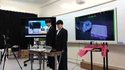 豊橋聾学校とリモート交流を行い、各グループが1年間のAT学習の成果を発表しました。