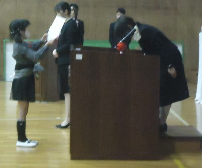 少し曇った天気を吹き飛ばすかのように、晴れ晴れとした表情で証書をうけとる姿はとてもたのもしかったです。