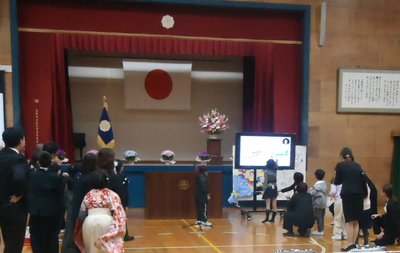 厳粛な中に生徒たちを祝う